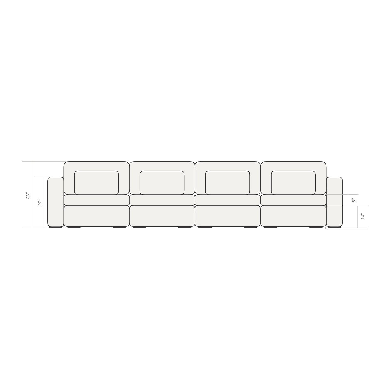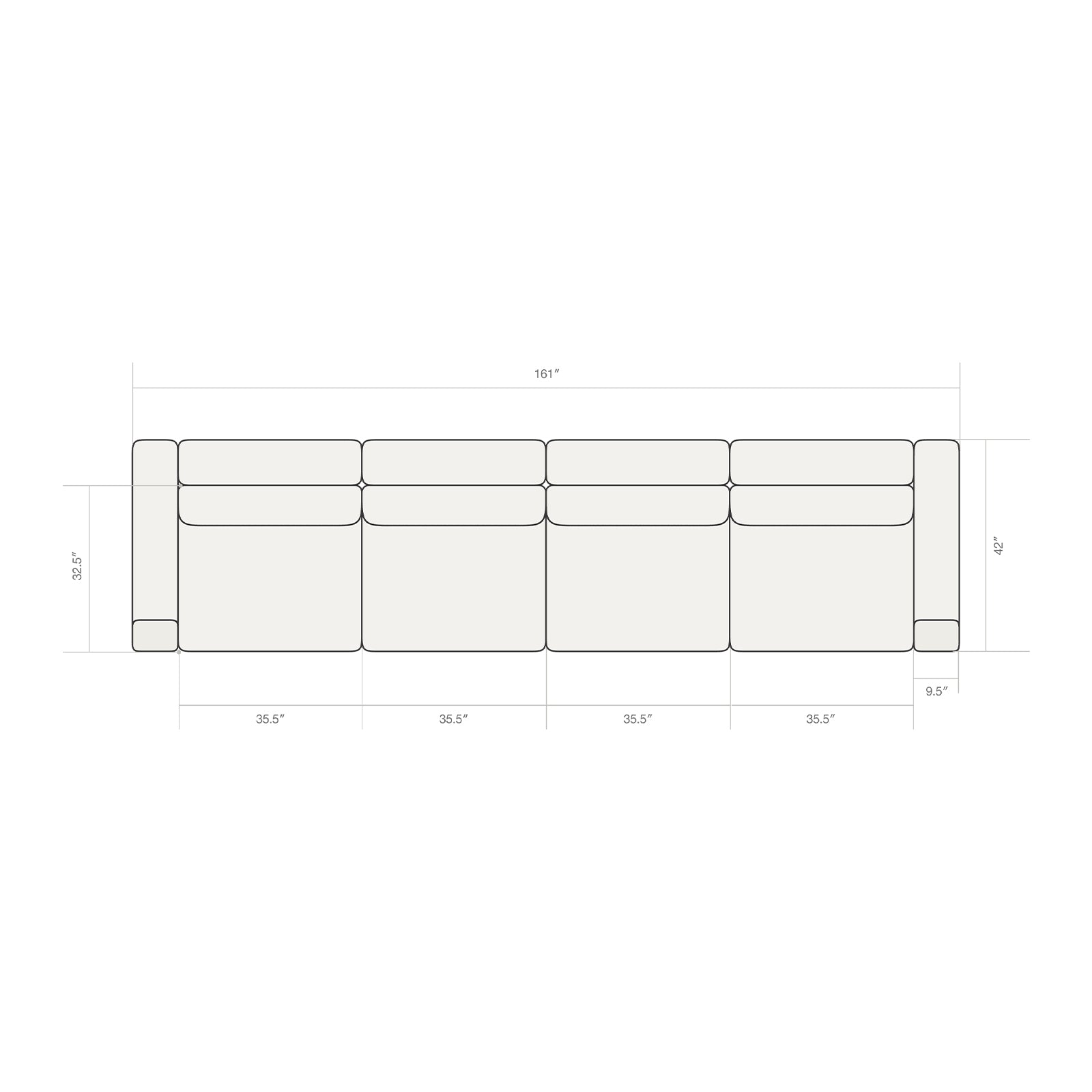 Our seats are on the wider end of the spectrum at 35.5" wide, but it isn't out of the ordinary. We found this to be the ideal width because a two-seater would fit perfectly in an small apartment and offer the flexibility of seating up to four people.