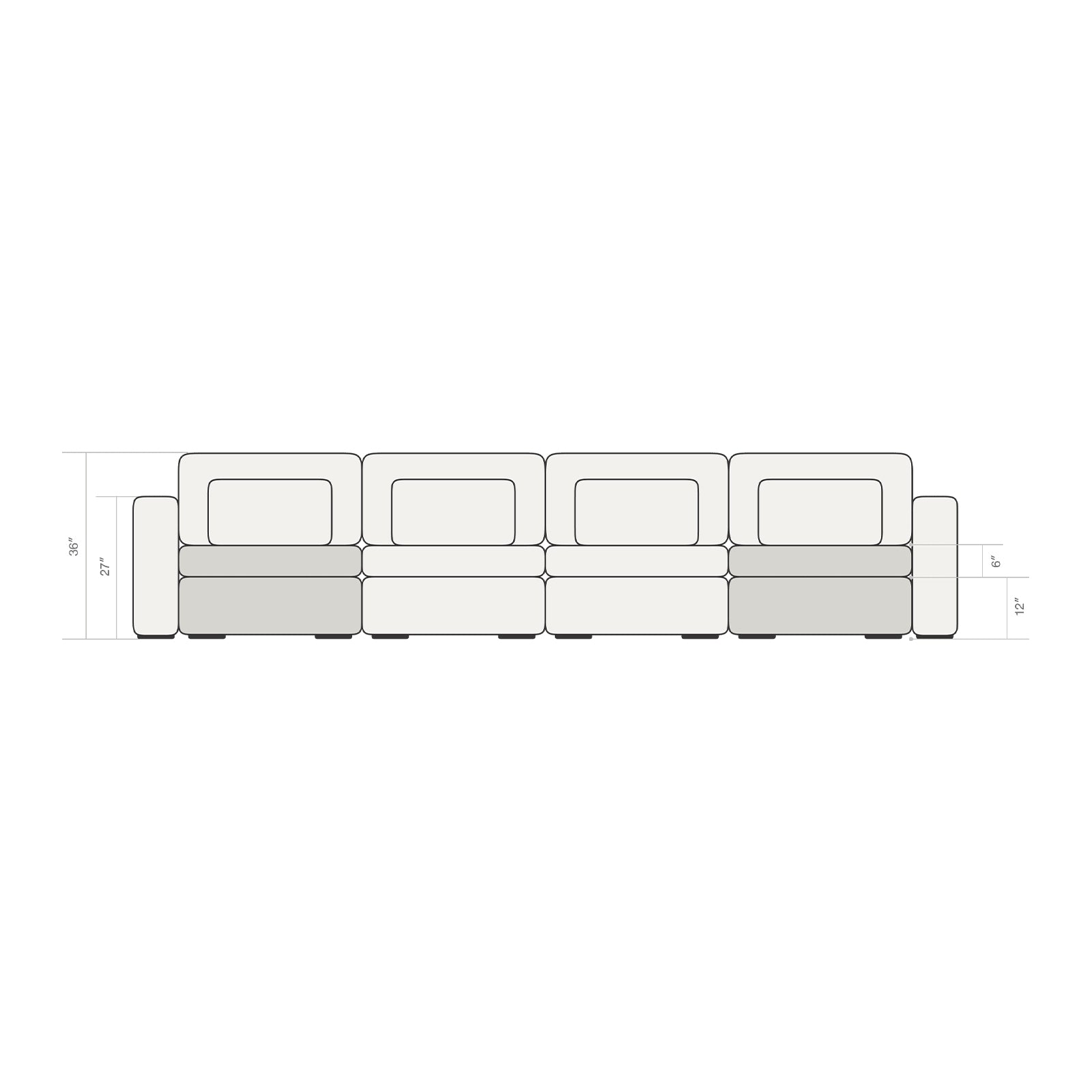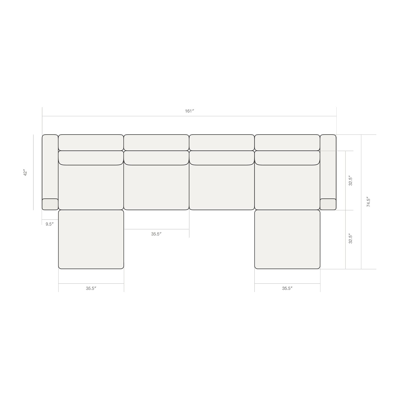 Our seats are on the wider end of the spectrum at 35.5" wide, but it isn't out of the ordinary. We found this to be the ideal width because a two-seater would fit perfectly in an small apartment and offer the flexibility of seating up to four people.